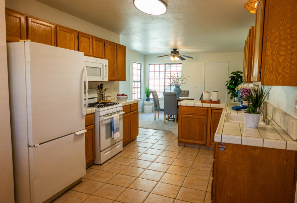 Kitchen : Dishwasher, Garbage Disposal, Refrigerator, Oven Range - Gas, Countertop - Tile