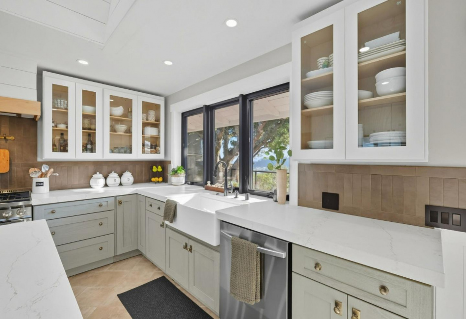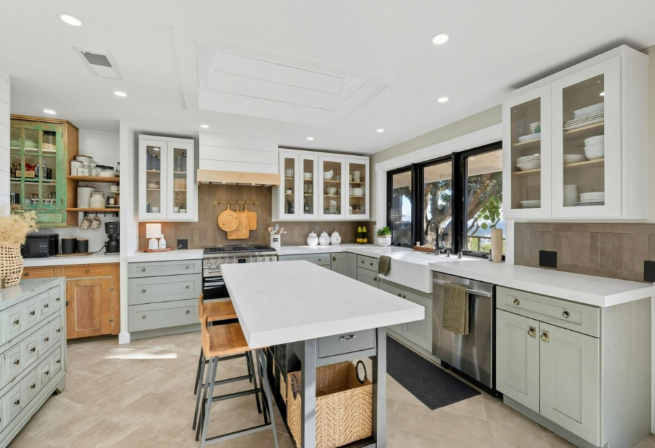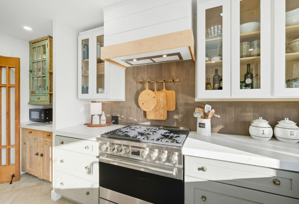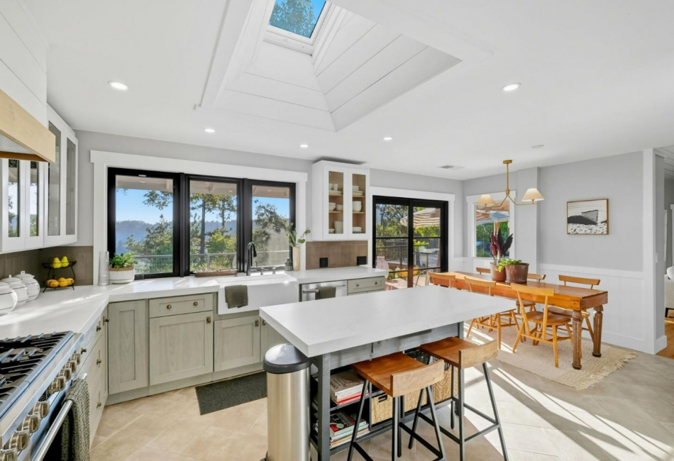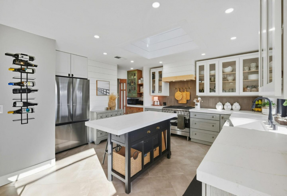 Kitchen : Hood Over Range, Oven Range - Built-in, Gas, 220 Volt Outlet, Dishwasher, Exhaust Fan, Garbage Disposal, Refrigerator, Oven Range - Gas, Cooktop - Gas, Oven - Self Cleaning, Skylight, Island, Countertop - Quartz