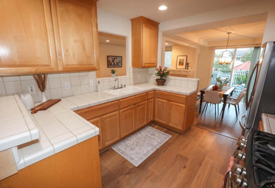 Kitchen : Oven Range - Built-in, Gas, Dishwasher, Exhaust Fan, Garbage Disposal, Refrigerator, Microwave, Countertop - Tile